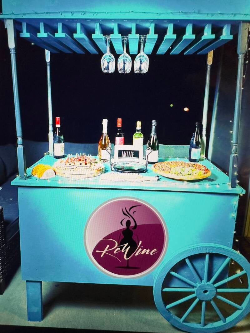 Mobile Wine Experience, 2 Bartenders, Open wine bar, Cheese Board with seasonal accompaniments, Floral, Black or White Linen's, 5 High-top Tables, Glassware and Plasticware, Insurance